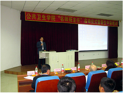 2010年9月21日晚5:00,“新葡的京集团35222vip名师班主任启动仪式暨新生中秋晚会”在新民校区第二教学楼2102隆重举行。受聘的2010级七位名师班主任、全体院党委委员、全体辅导员以及全体2010级新生和2009级部分学生代表参加了本次活动,会议由党委副书记兼副院长于洗河主持。
