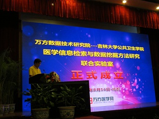 2012年8月16日,由万方数据股份有限公司举办的“2012万方医学信息年会暨万方医学网成立三周年庆典”活动在成都召开。在此次盛会上,启动了万方数据与新葡的京集团35222vip合作共建“医学信息检索与数据挖掘方法研究联合实验室”,并举行了隆重的授牌仪式。新葡的京集团35222vip副院长刘晓冬教授与实验室主任——信息检索教研室张云秋教授应邀参加了揭牌仪式。
