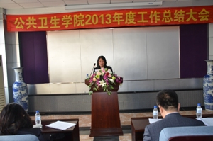 首先,李娟院长作了2013年行政工作总结报告,报告从重点抓好班子建设和系主任科主任换届工作,形成团结、和谐、务实、创新的领导集体;加强学科建设,搭建学科发展平台;加强本科教育,深化教学改革,拓展本科教育新思路;加强研究生教育,强化创新人才培养;积极发展继续教育,提高现代远程教育质量;强化学院科技创新和对外服务能力,提升学院整体科研实力和水平;人才引进与师资培养;学生培养与校园文化建设;做好校友工作;加强条件支撑和民生改善,促进和谐学院建设等十个方面进行了全面总结。李娟院长在报告中最后指出学院工作存在的不足,新的一年要本着有所为有所不为的理念,优先抓好学院发展的重点工作。