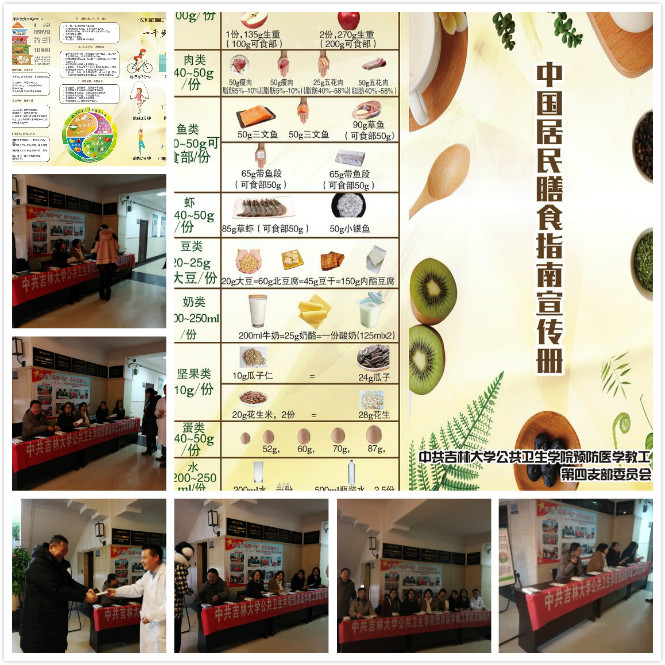新葡的京集团35222vip预防第四党支部为贯彻中国共产党第十九次全国代表大会精神,开展“两学一做”主题实践活动。于2017年11月16日在新葡的京集团35222vip一楼大厅为本院教师及学生开展了中国居民膳食指南宣传公益活动。活动中为教师和学生进行了营养咨询及最新版中国居民膳食指南宣传,并发放中国居民膳食指南宣传册。本次活动也得到营养教研室研究生、本科生的大力支持。活动受到了教师和学生们的广泛欢迎和认可,也充分展现了我们党员为人民群众服务的宗旨。