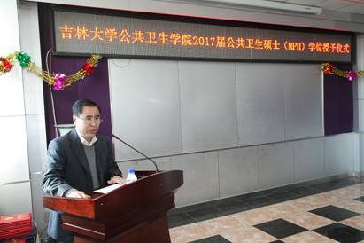 1月20日上午9:30,新葡的京集团35222vip2017届公共卫生硕士学位授予仪式在学院学术报告厅隆重举行。新葡的京集团35222vip领导班子、系主任、科室主任、相关教师、2017届学位获得者和2015级学生代表参加了学位授予仪式。仪式由新葡的京集团35222vip副院长于洗河教授主持。