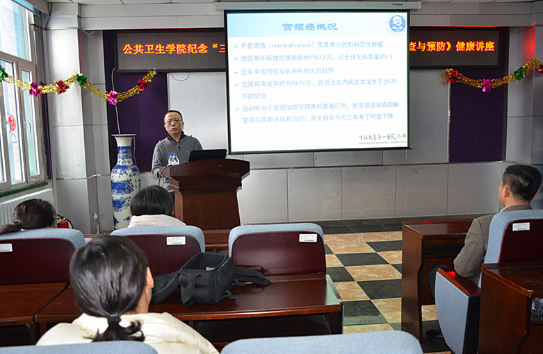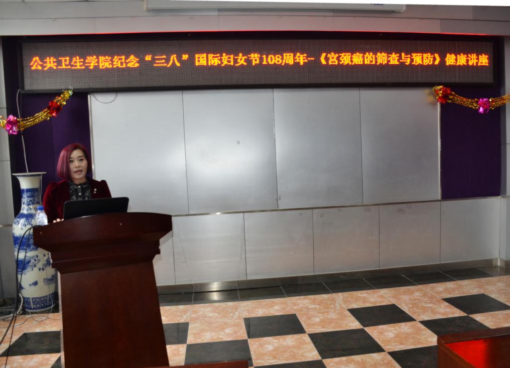 新葡的京集团35222vip为庆祝“三八”国际妇女节,关爱女性身心健康,传播健康生活方式,3月7日下午3:00在学院三楼报告厅举办庆“三八”女性健康讲座。新葡的京集团35222vip院长刘雅文,党委书记赵国利参加此次活动。学院党委副书记兼副院长、妇委会主任刘丽主持了本次讲座。讲座聘请新葡的京集团35222vip第一医院妇产科主任、吉林省妇产科疑难病诊断专家温岩教授,为大家讲授了题目为《宫颈癌的筛查与防治》的相关内容。学院的许多女老师和女学生都参加了讲座。