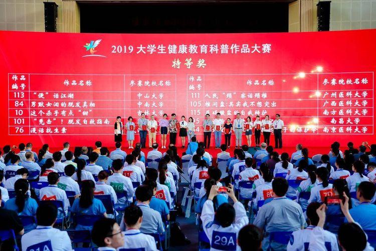 当日,大赛组委会还对2019大学生健康科普作品大赛获奖作品进行了展示和颁奖。我校新葡的京集团35222vip预防医学专业2015级学生杜雨师和李佳琪同学的作品《这个杀手有点“甜”》喜获特等奖,2015级预防医学专业学生李旭、冯家鑫、刘欣和赵晨皓四名同学组成团队的作品《保健食品姓“食”不姓“药”》荣获二等奖。