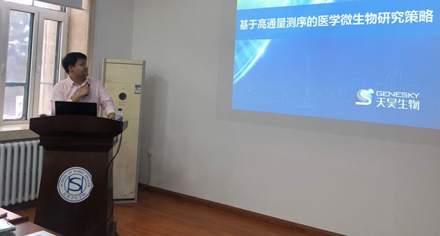 本次交流活动,来自天昊生物的技术支持工程师赵鹏进行了主题为《基于高通量测序的医学微生物研究策略》的技术讲座。参会人员针对扩增子和宏基因测序等内容进行了交流和讨论。本次活动促进学院青年学者对于微生物相关基因检测技术的了解。