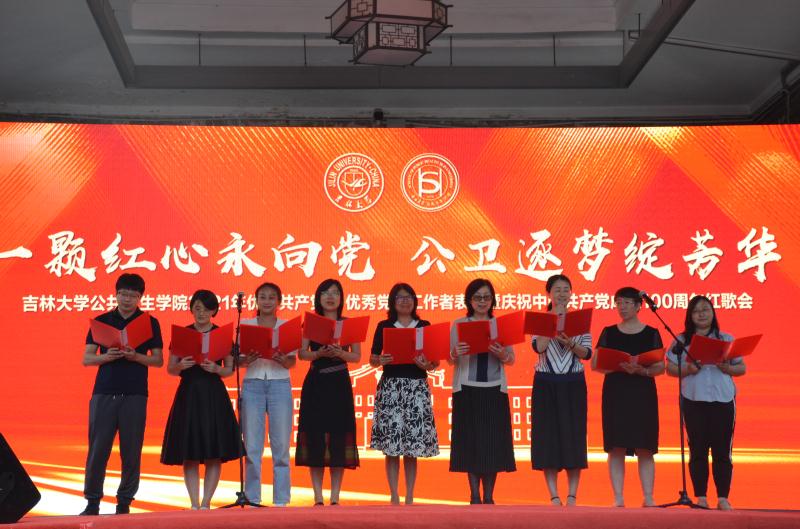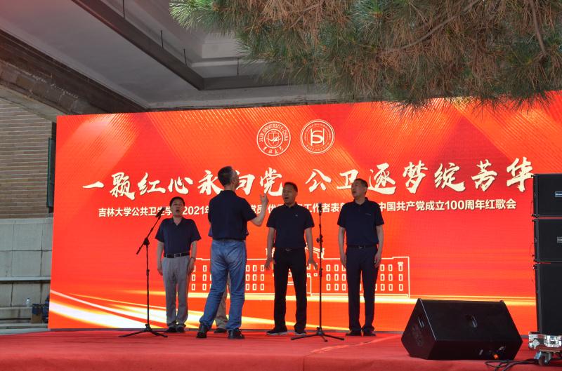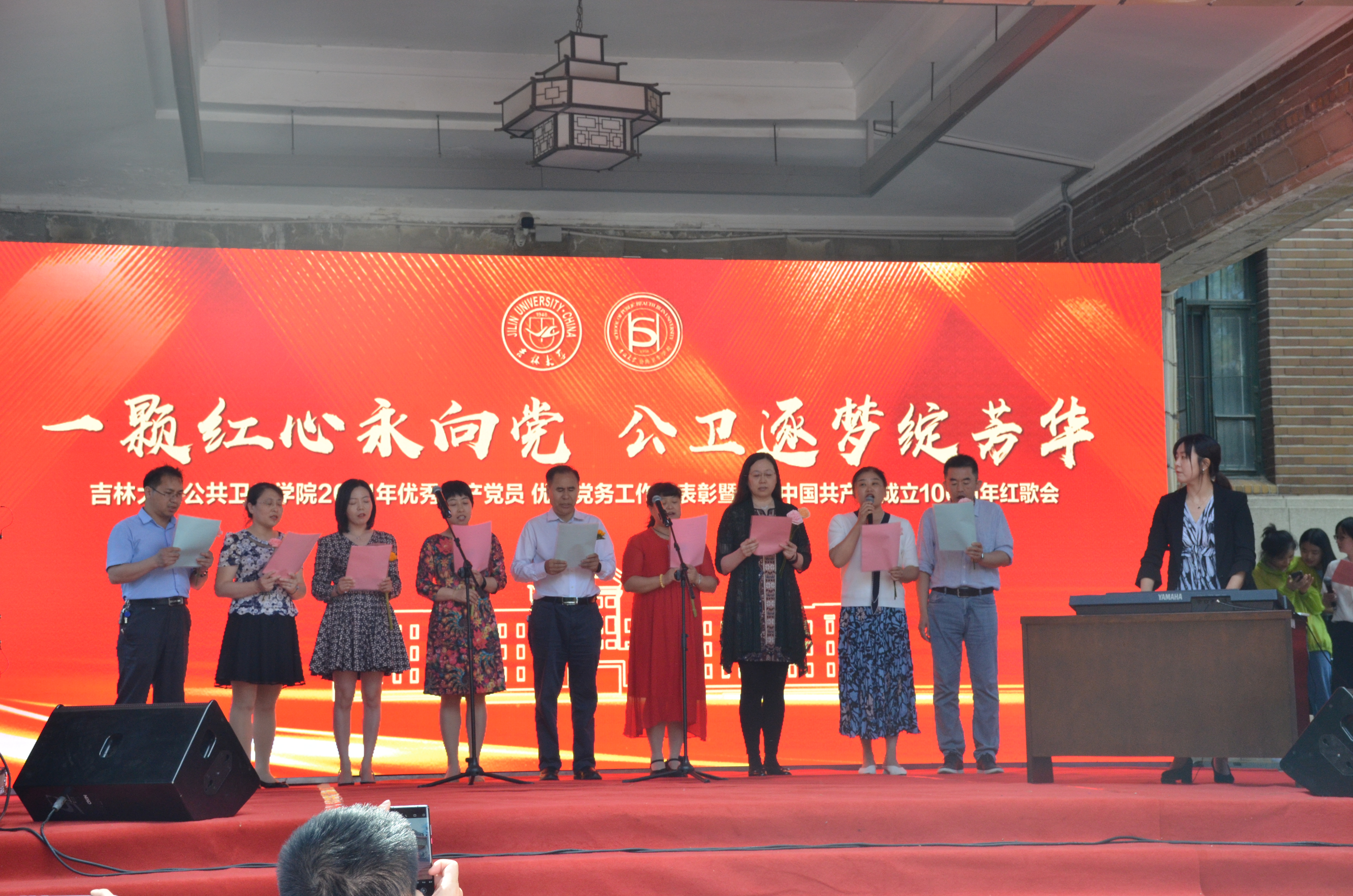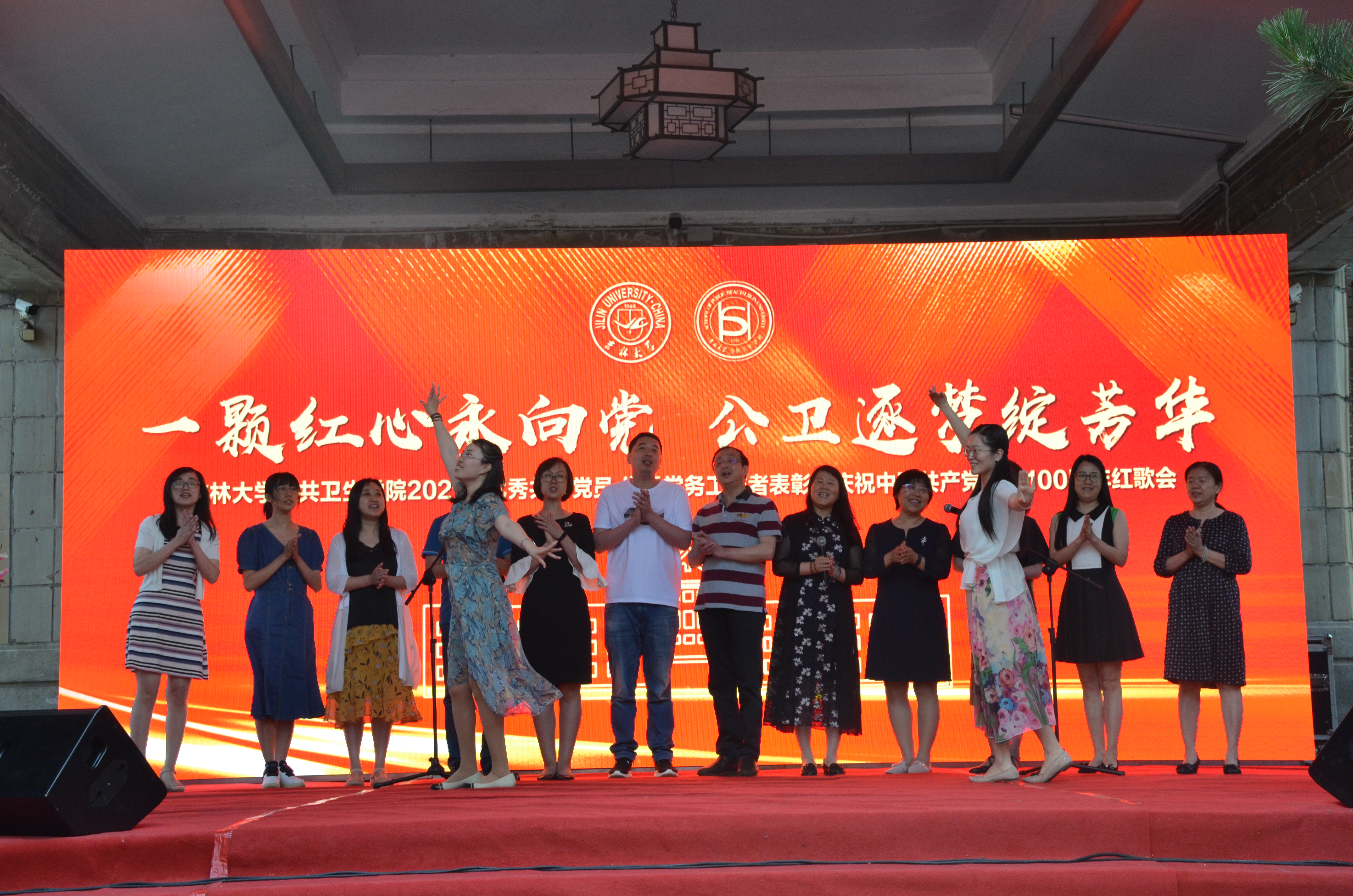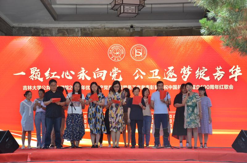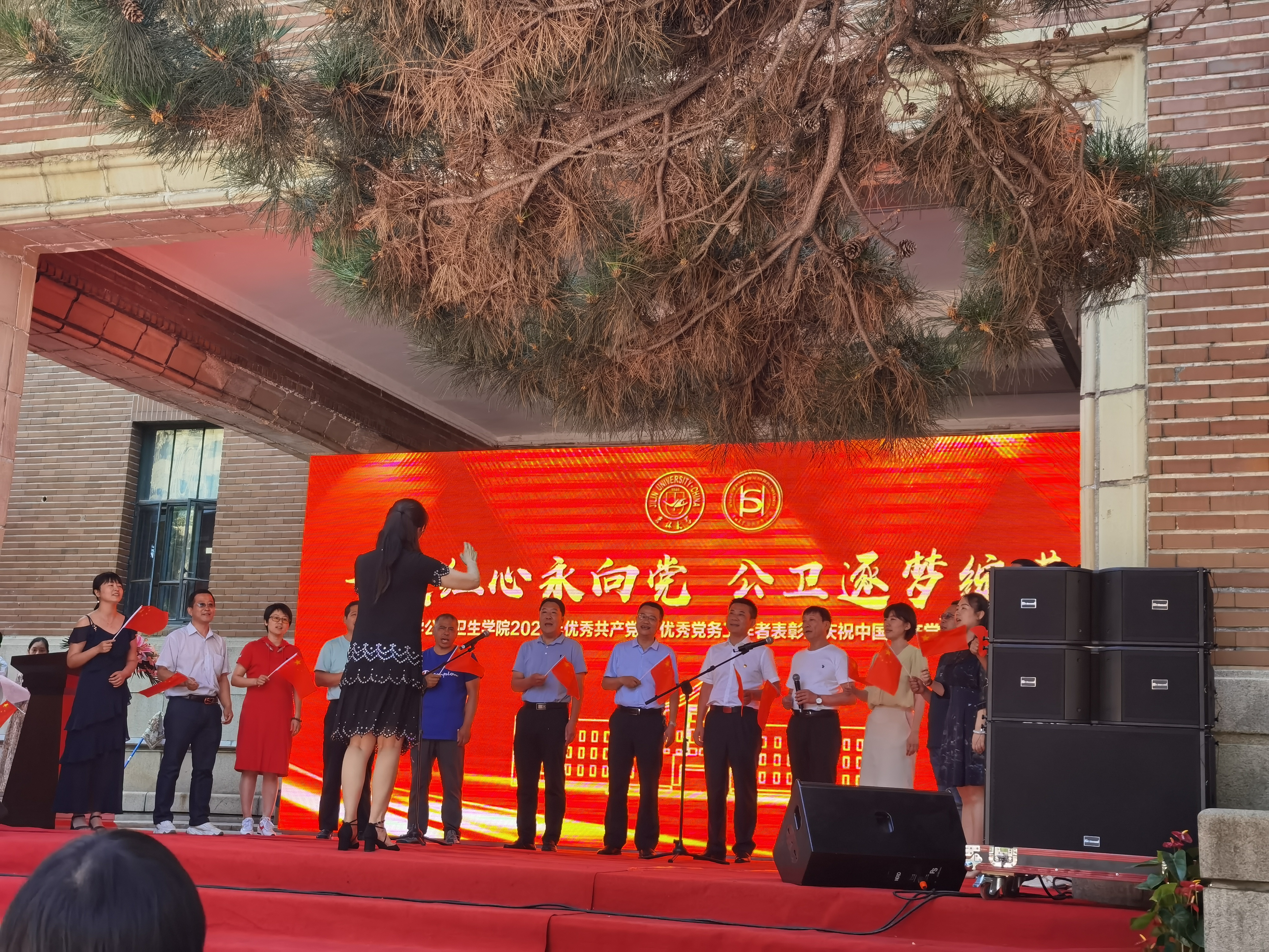 为庆祝中国共产党的百年华诞,2021年6月24日,新葡的京集团35222vip妇委会、工会于学院办公楼前联合举办了“一颗红心永向党,公卫逐梦绽芳华”2021年优秀共产党员、优秀党务工作者表彰暨庆祝中国共产党建党100周年红歌会。学院党委书记赵国利、院长刘雅文、副院长魏国志、党委副书记于亮及各科室师生共同参加了本次活动。
