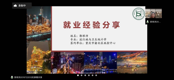 为切实做好毕业生就业指导工作,最大限度降低疫情对就业工作的影响,提升毕业生应聘技能和职场竞争力,新葡的京集团35222vip于4月8日晚在线上开展了“‘职’无不言” 系列就业指导活动之毕业年级签约经验分享会。本次活动邀请了学院2019级流行病与卫生统计学专业硕士郭垠沛和2019级卫生毒理学专业硕士何昌昊作为主讲人。部分研究生和本科生同学参加此次活动。