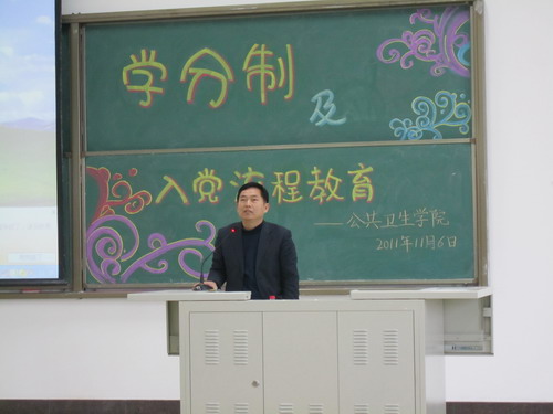 为使11级新生充分了解医学部的“学分制”规定,由新葡的京集团35222vip主办的新生学分制教育大会于2011年11月6日下午1:30在中心南区李四光楼第一阶梯教室隆重举行。新民校区教务办主任吴运涛,太平洋保险公司理赔顾问黄瑶,新葡的京集团35222vip学生工作办公室主任吴晓辉、辅导员苏国范,以及