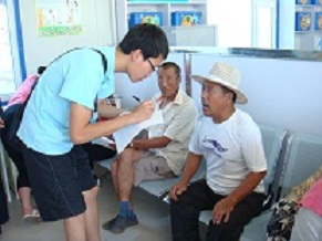 7月12号新葡的京集团35222vip暑期“三下乡”农民健康体检实践小组一行24人来到榆树市,在之后的四天里要在榆树市保寿镇黑林子村和闵家镇卫生院为农民进行健康体检。由于榆树健康体检人数较多,工作量比较大,要求待检农民早餐空腹,所以要求工作人员提前到场,指导老师和同学们都五点左右就起床,然后再车上把早餐解决,如果遇到道路特别远的起床还会更早。在这四天里,天气变幻莫测,刮风下雨阴晴不定,特别是黑林子村的条件比较艰苦,给活动带来了很大的困难,但是所有的队员没有一个说苦喊累的,都认真的完成自己的任务,咬牙坚持过来。在榆树“三下乡”的几天里,志愿者们为村民们量血压、血糖、体测,协助老师和医生采血、做心电,向他们讲述有关健康的知识;遇到血压、血糖不正常的村民,及时向他们普及健康知识,并告诉他们如何注意饮食和生活习惯,预防高血压和糖尿病的发生。