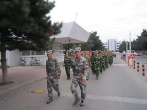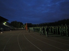 凌晨四点,新生们在南区操场迅速集合,整装待发。伴随着紧张而又兴奋的心情,新生们的拉练开始了。大家成四列纵队从操场出发,经北门、东门、南门最后从西门回到操场,完成整个拉练的行程。