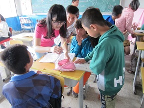 到达学校后,仅两排瓦房构成的学校、完全不像样的操场带给志愿者们很大的心理落差,但他们依然迅速从中恢复,进入各班进行自我介绍,并很快与孩子们打成一片,孩子们有的拿出习题册让志愿者为其讲解,有的很高兴地拉着志愿者的手做游戏。之后,志愿者与还小学生们一起做了课间操,在互动中加深了对彼此的了解,为之四天后的教课、游戏打好了基础,为整个夏令营活动创造了一个良好的开端。