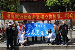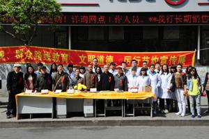2014年4月23日上午9点30分,为宣传正能量,提高广大市民对核心价值观和第二次群众路线思想的认识,宣传精神文明建设、学习雷锋精神、遵守文明道德、搞好光盘行动坚持厉行节约,同时引导新葡的京集团35222vip学子践行社会主义价值观,树立为人民服务的宗旨意识,发扬中华民族的传统美德,新葡的京集团35222vip在长春市人民政府法制办公室、长春日报社党委、朝阳区委宣传部、朝阳区委政法委、桂林街道党工委、桂林派出所的大力支持与帮助下搭建平台于长春市朝阳区恒客隆对面举办了以“倡导培育社会主义核心价值观·第二次群众路线教育弘扬文明道德厉行勤俭节约”为主题的宣传展。本次活动由新葡的京集团35222vip院团委学生会、朝阳社区和五老志愿者组织并参加,新葡的京集团35222vip2011级、2012级、2013级学生党员代表、学生入党积极分子代表以及优秀学生志愿者积极参与,长春日报社报道。