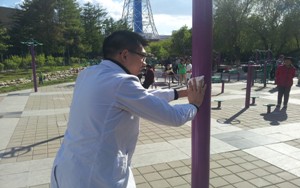 下午三点,参加本次活动的同学准时到达了朝阳公园。随后,由团支书带领大家学习习近平总书记讲话的深刻内涵,并就自己的观点进行交流和沟通。在大家对习近平总书记系列讲话有了一定认识和感知之后,开始进行本次活动的第二项——义务擦拭健身器材。经过分工,同学们用自己带来的抹布等工具对朝阳公园内的健身器材进行了全面而细致的打扫。同学们此举得到了在场锻炼的市民的配合、支持和鼓励。经过同学们的擦拭,健身器材焕然一新,在市民们称赞声中本次活动完满结束。