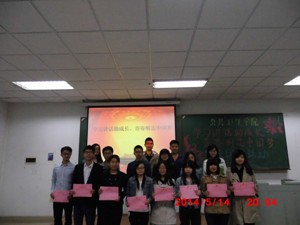 活动伊始,各团支部代表轮流上台对自己团支部的团日活动进行讲解。各班团支部围绕“学习讲话助成长,青春明志中国梦”这一主题展开了一系列活动,充分体现了各支部的风采。各代表采用PPT、视频、微电影等形式对自己支部举办的团日活动进行讲解,让大家对活动有了充分的了解。讲解环节过后,评委们根据各班的活动内容、效果等给出了公正的分数。最后,有十个班级获得了优秀组织奖。评委们为获奖班级的团支书颁发证书,本次大会完满结束。