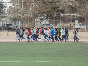 运动健身不同于体育竞技,它更加注重对学生兴趣和个性的培养与发展,并为每个同学搭建了历练自我和提升自身素质的平台,因此同学们的参与热情格外高涨。每天晚上六点,同学们准时在体育场集合。首先进行的是太极拳练习,太极拳法含蓄内敛、以柔克刚、连绵不断,通过一招一式的练习,培养了同学们“尚武崇德”、“拳以德立、无德无拳”的太极精神。简单的热身活动结束后,同学们在体委的带领下开始跑步锻炼,并且根据个人身体素质的差异采取跑步与慢走交替进行的形式,使每位同学在不过度劳累的同时保证了运动量。同学们在操场上共同奔跑,挥洒汗水,浓浓的友情与欢笑洋溢其中。