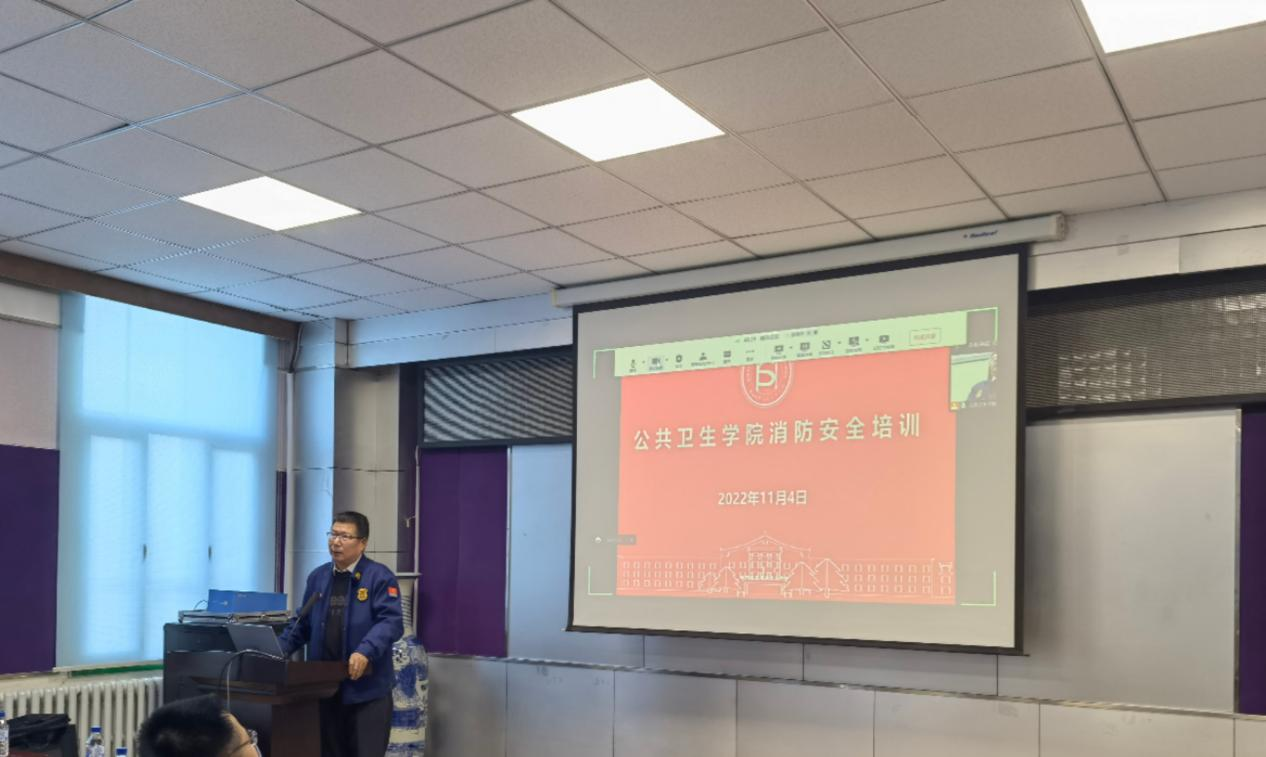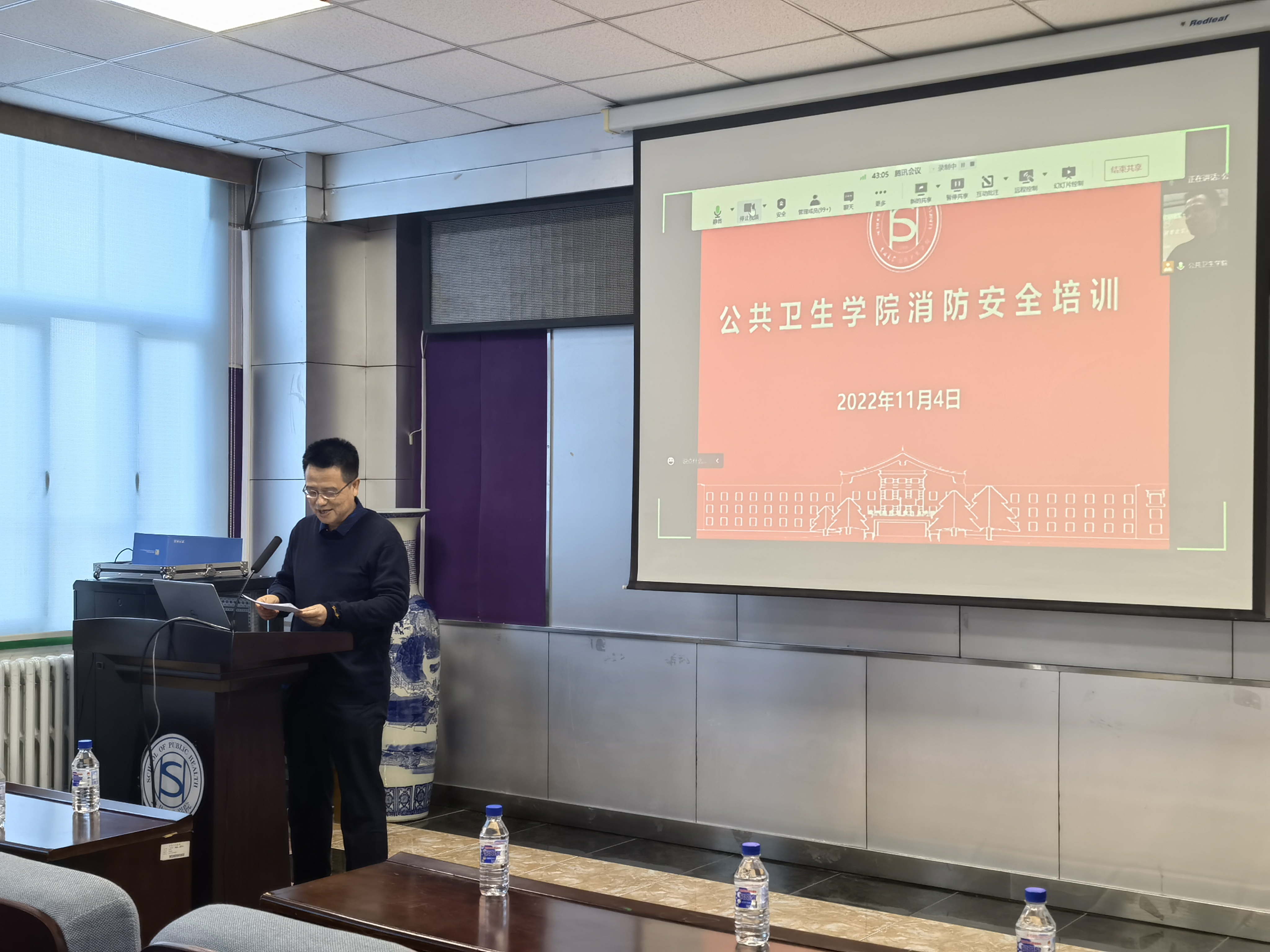 In order to improve the fire safety awareness of teachers and students, enrich fire safety knowledge, improve self-rescue ability, and create a safe and peaceful campus atmosphere, the College of Public Health organized fire safety knowledge training and emergency drills on November 4. The training was hosted by Wei Guozhi, the vice president of the college, and An Zhicheng, the head of the Fire Protection Section of the Xinmin Security Office of the Security Department, was the keynote speaker, explaining the fire safety precautions and protective measures for the teachers and students of the college. The training will be conducted in a combination of online and offline, and all graduate and undergraduate students will participate in the training.